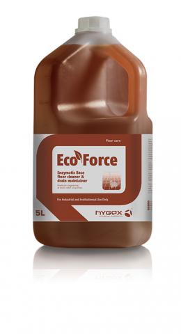 Eco-Force is a free rinsing enzymatic base floor cleaner and degreaser designed to remove grease, protein and carbohydrate soil types from floors and drains to eliminate greasy and slippery floors problems while maintaining drains running freely and odor free due to the natural effect of enzymes in digesting commonly found  soils such grease, protein and  carbohydrates.